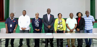 Shown at the press conference, from left: Preston Cunningham, Department of Parliamentary Registration; Michael Wright, Data Protection Commissioner; Lucretia Dean-Rolle, Consultant...