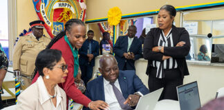 Prime Minister Philip Davis and his wife Mrs Ann Marie Davis Verifying for their new cards.