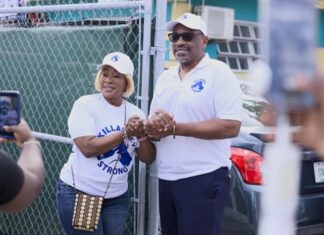 Prime Minister Philip Brave Davis and wife Ann Marie at the mega PLP Rally on R M Bailey Park.