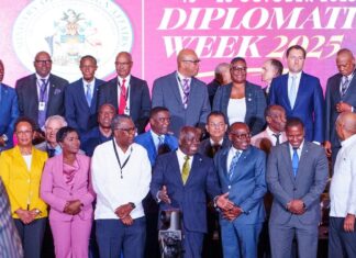 PM Davis along with Cabinet colleagues and ambassadors at the opening of Diplomatic Week.
