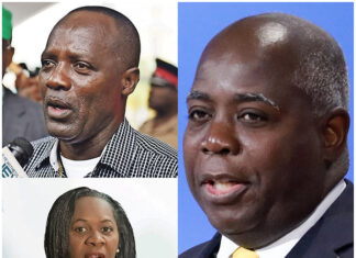 PM Philip Davis KC along with Belinda Wilson and Kimsley Ferguson address public workers.
