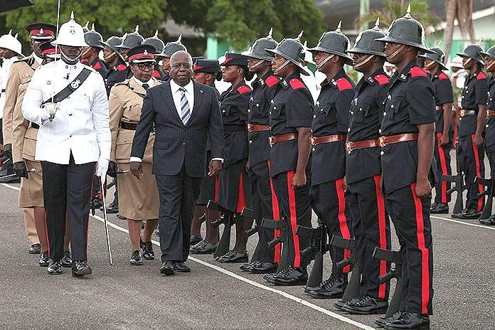 PM Philip Davis KC inspects the graduates of Parade A and F Squads of the RBPF.