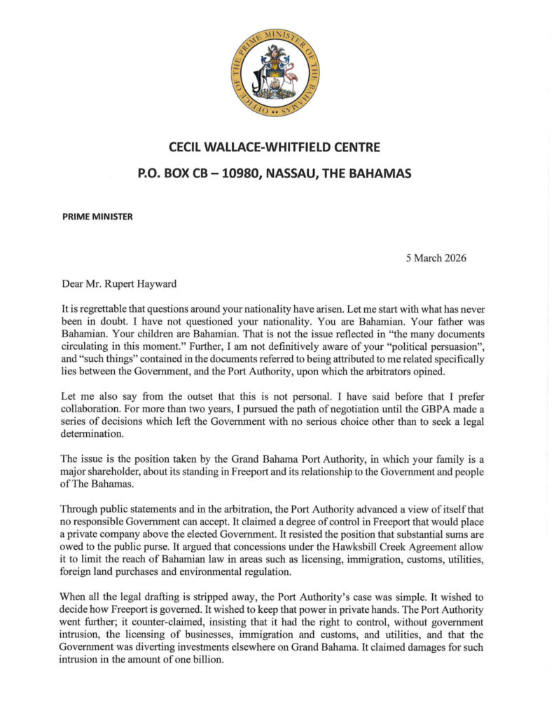 Local PM Philip Davis KC writes Rupert Hayward of GBPA Mar 5, 2026 0 5 Share on Facebook Tweet on Twitter Prime Minister Davis Open Letter to Mr. Mr. Rupert Hayward March 5, 2026Download