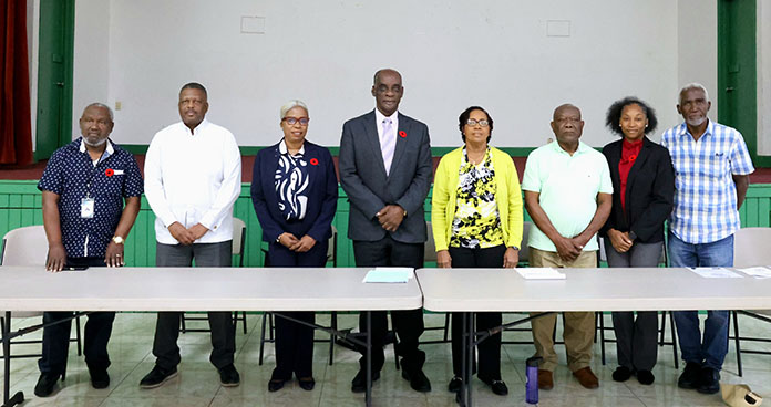 Shown at the press conference, from left: Preston Cunningham, Department of Parliamentary Registration; Michael Wright, Data Protection Commissioner; Lucretia Dean-Rolle, Consultant and Project Manager, Harrison Thompson, Consultant and Parliamentary Commissioner; Denise Pinder, Assistant Parliamentary Commissioner for the Bahamas and Officer in Charge of Grand Bahama; Charles King Consultant; Keithora Munroe, Computer Specialist on Grand Bahama; and Cecil Thompson Moderator for the Biometric Meeting.