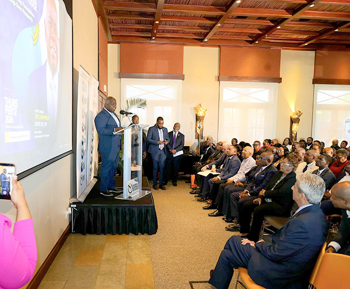 Prime Minister Davis also gave the business community an update on the airport and Grand Lucayan project.