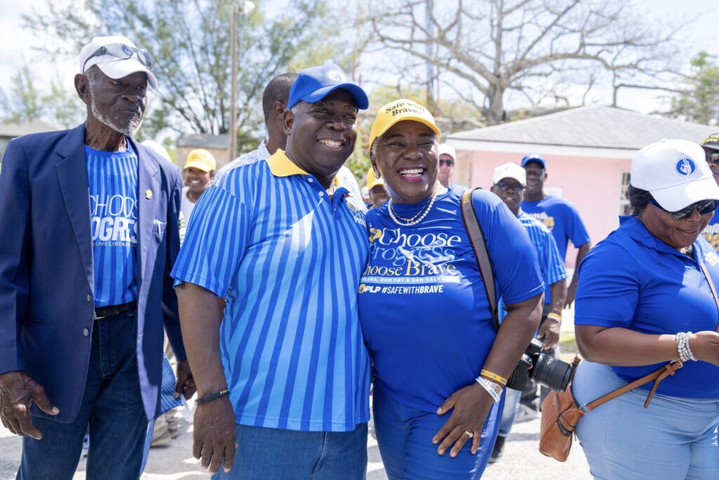 PM Philip Davis KC and wife Ann Marie outside the Administration Office in Cat Island.