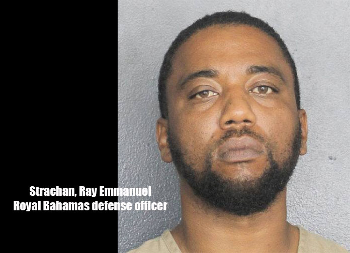 The officer, unofficially identified as Ray Strachan, was recently arrested alongside two Bahamian men who were allegedly found in possession of nine firearms, 15,000 rounds of ammunition, and marijuana.