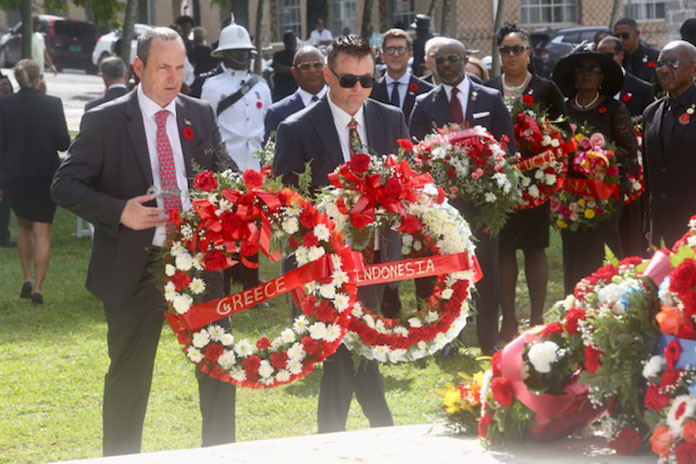 NASSAU, The Bahamas — Remembering those who died in war: Remembrance Day religious services were held on Sunday, November 9, 2025 at Christ Church Cathedral.  After the church service, wreaths were laid at the Cenotaph in the Garden of Remembrance at the heart of the city of Nassau by officials, civic and service organizations, and members of the diplomatic corps.   (BIS Photos/Kristaan Ingraham)