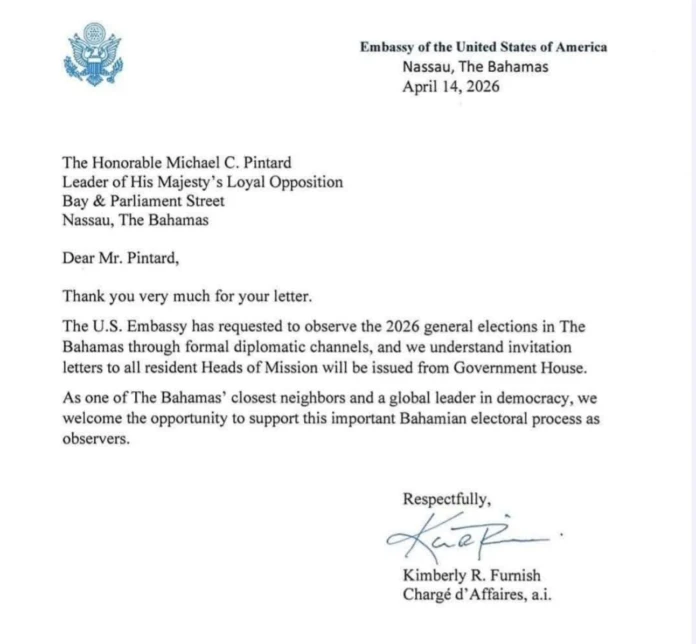 “The U.S. Embassy has requested to observe the 2026 general elections in The Bahamas through formal diplomatic channels,” the letter states, adding that invitations to observer missions “will be issued from Government House” to all resident Heads of Mission.